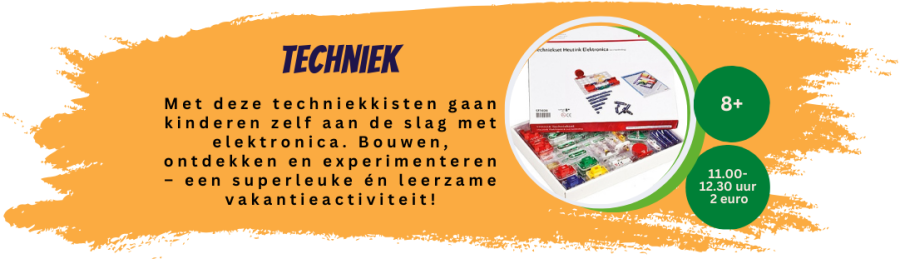 Donderdag 26 februariMet techniekkisten gaan kinderen zelf aan de slag met electronica. Bouwen, ontdekken en experimenteren, een superleuke activiteit!Vanaf 8 jaar2 euro ppinschrijven